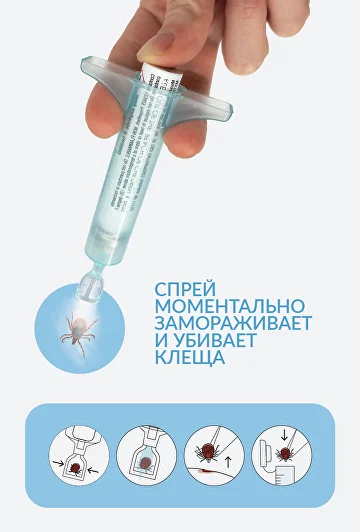 - Замораживаете впившегося клеща - клещ мгновенно умирает.